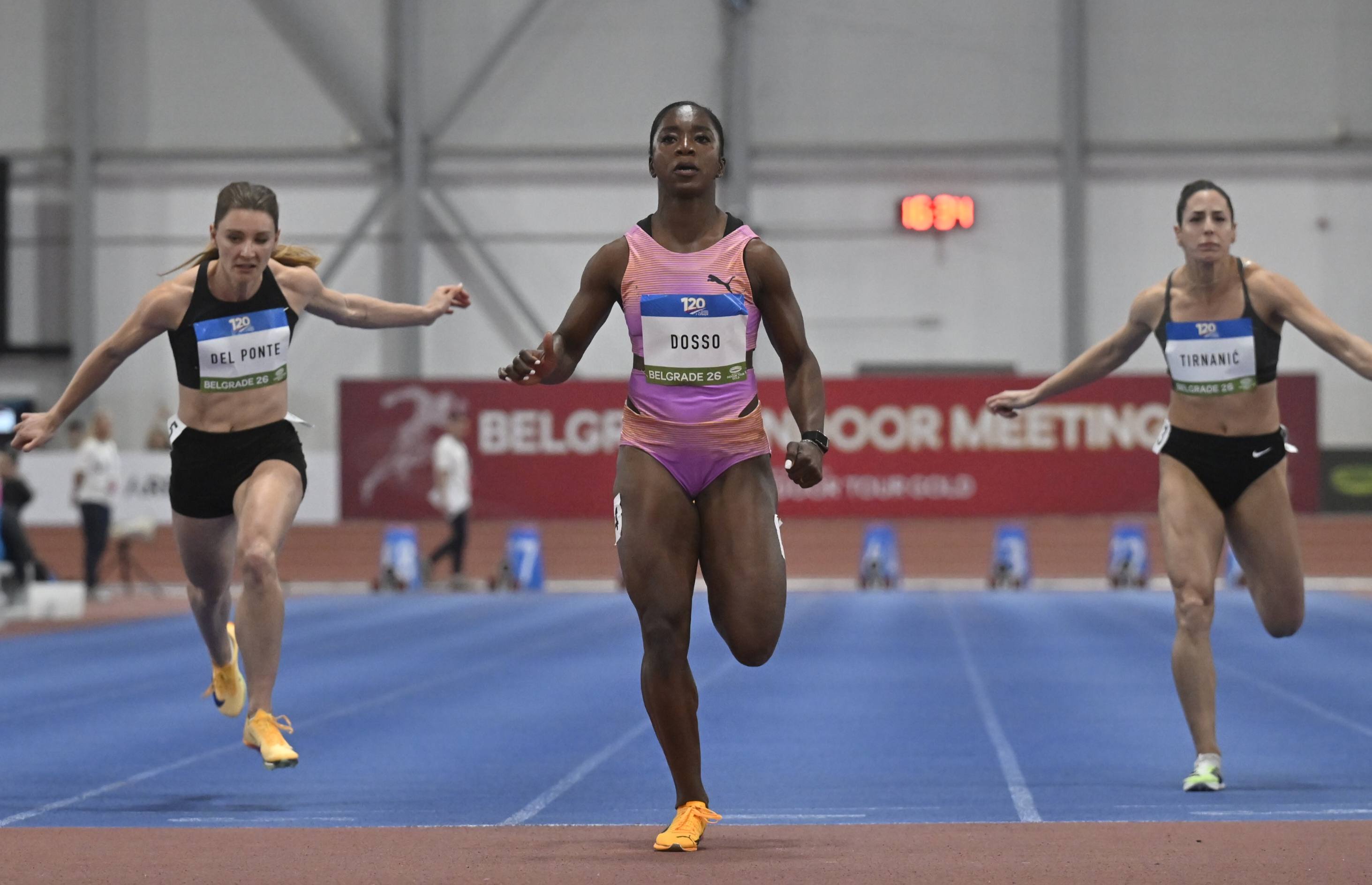 Italy’s European indoor champion Zaynab Dosso was a brilliant winner of the women’s 60m in a meeting record of 7.02, just 0.01 outside her national record set on her way to gold at Apeldoorn 2025.